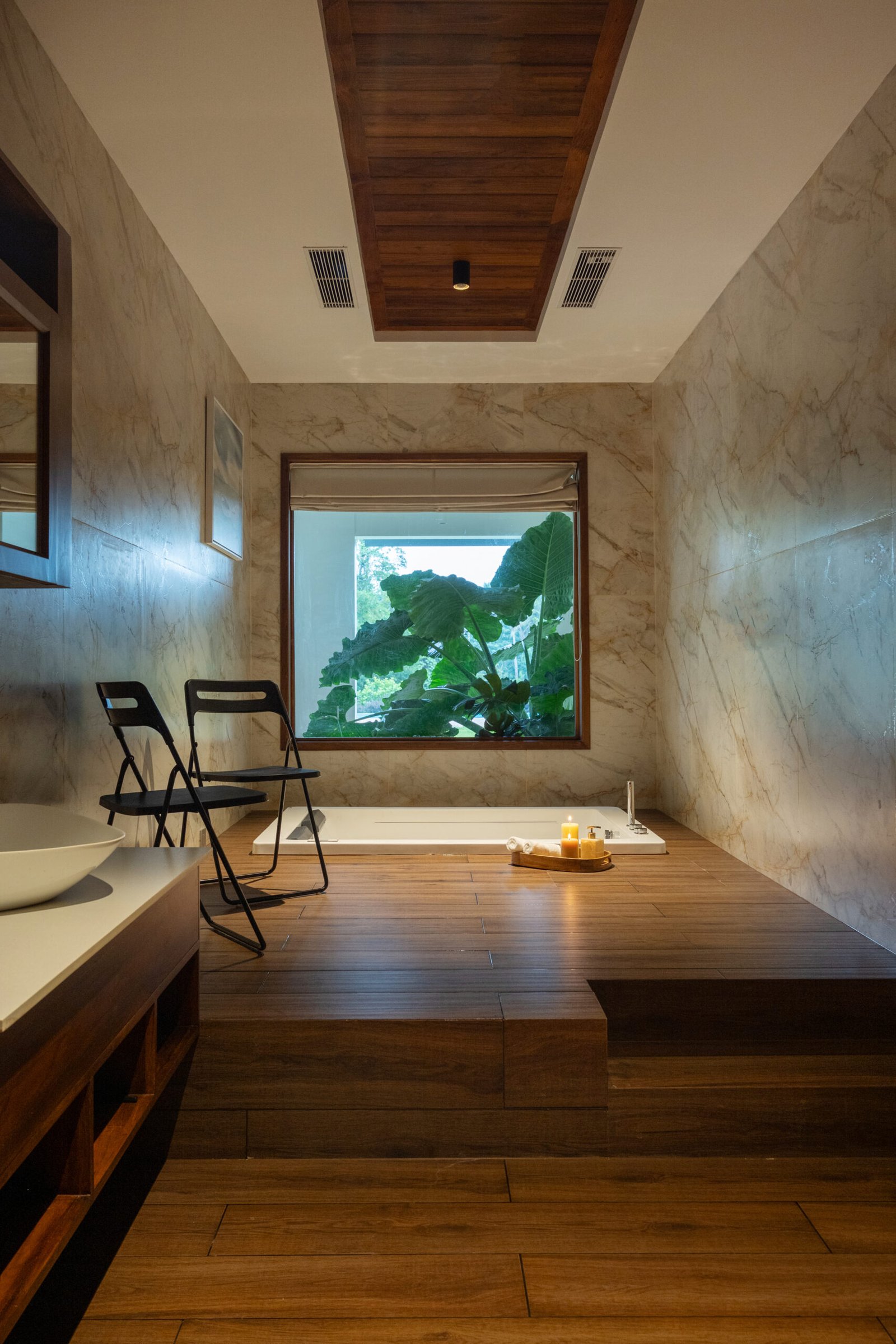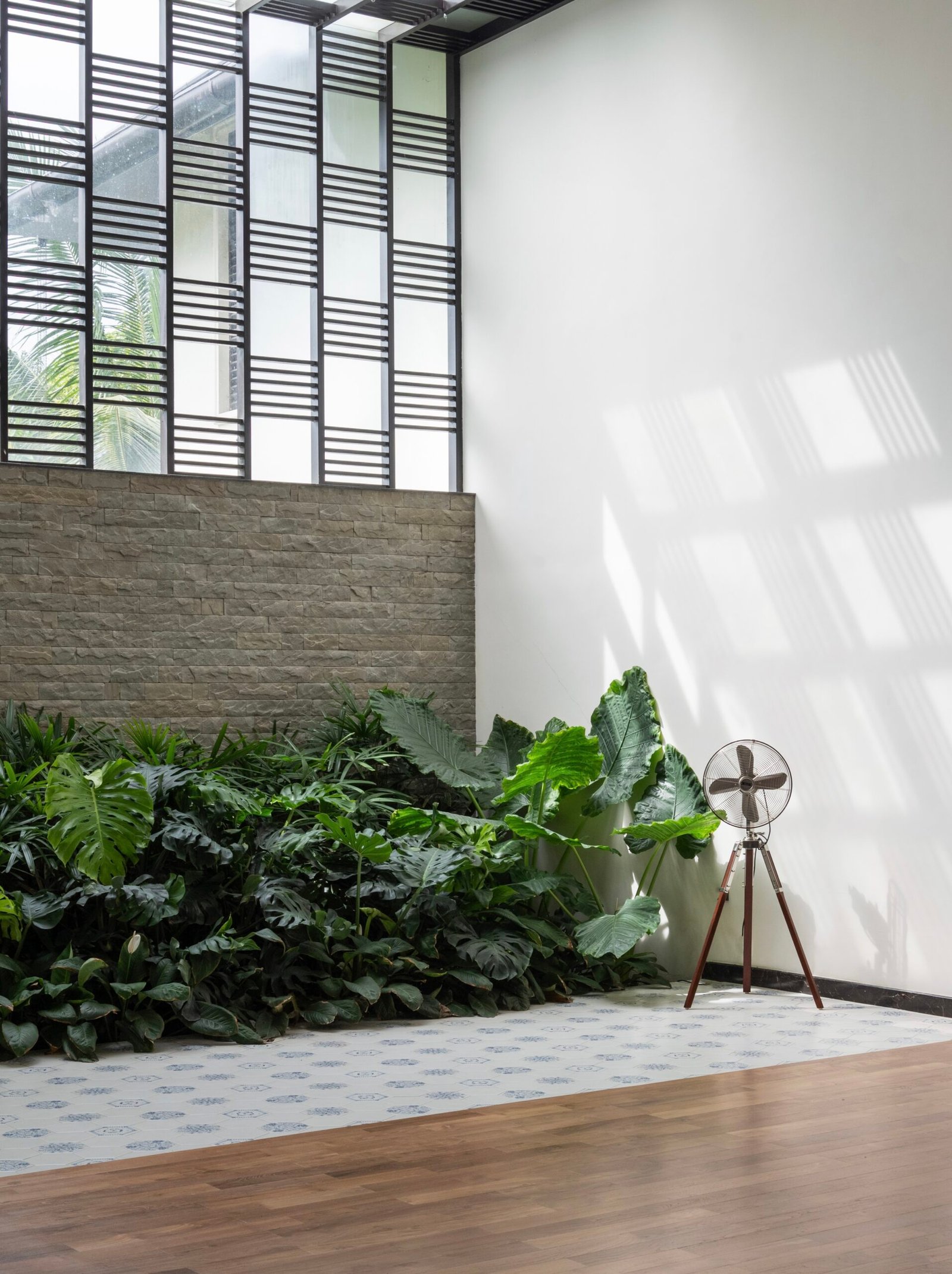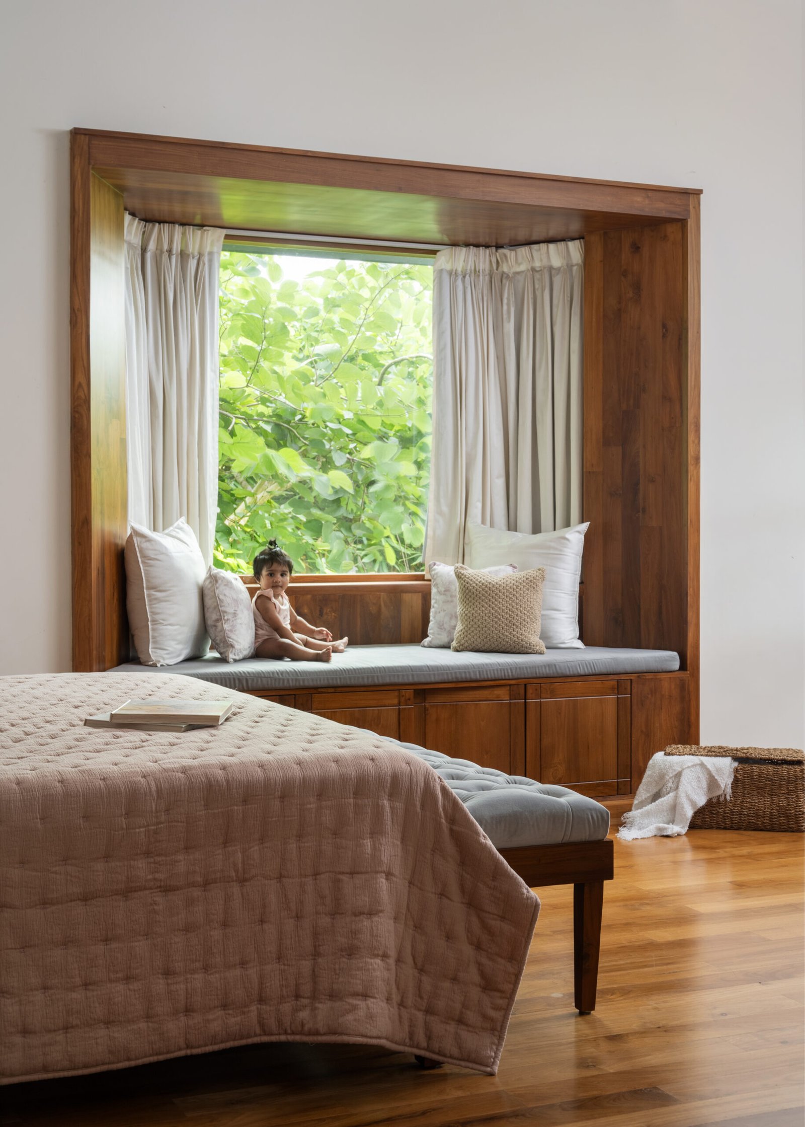 Every room in the house is meant to bring the family together, beginning with the tall Ficus that welcomes on arrival and becomes the center stage for family events, to the Floating deck that overlooks into the vast greenscape, that is an integral part of the home as well as their everyday life. Witnessing every milestone in the family, from baby steps to numerous anniversaries, this house is a strong witness for the generations to come.