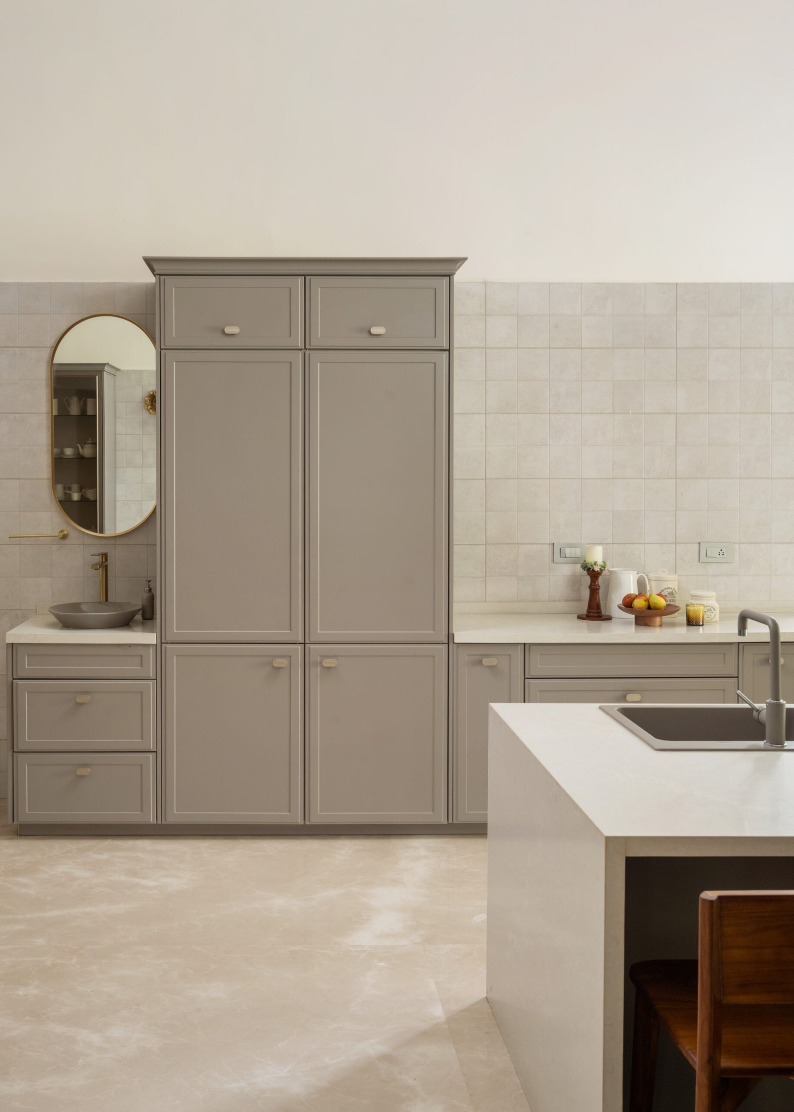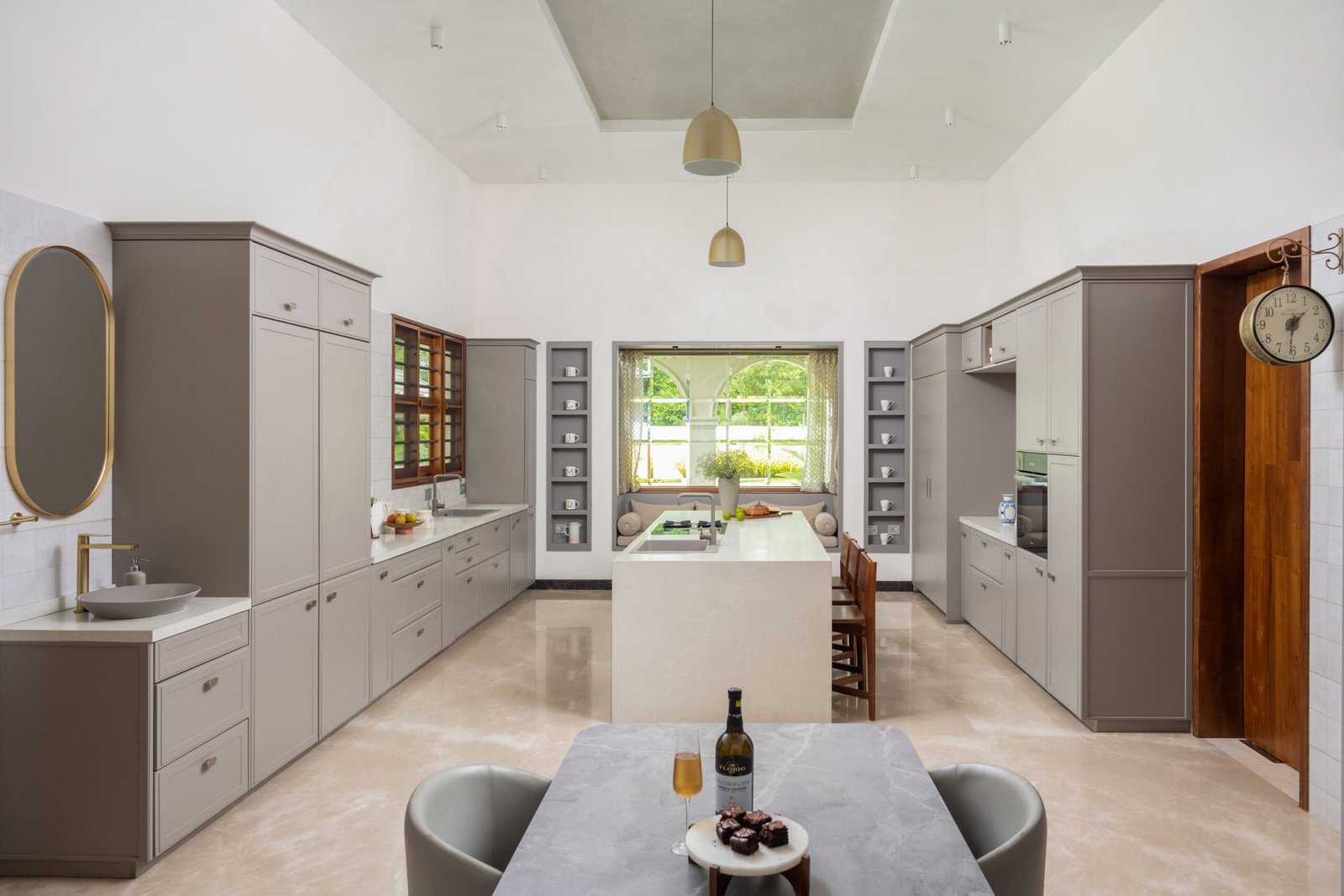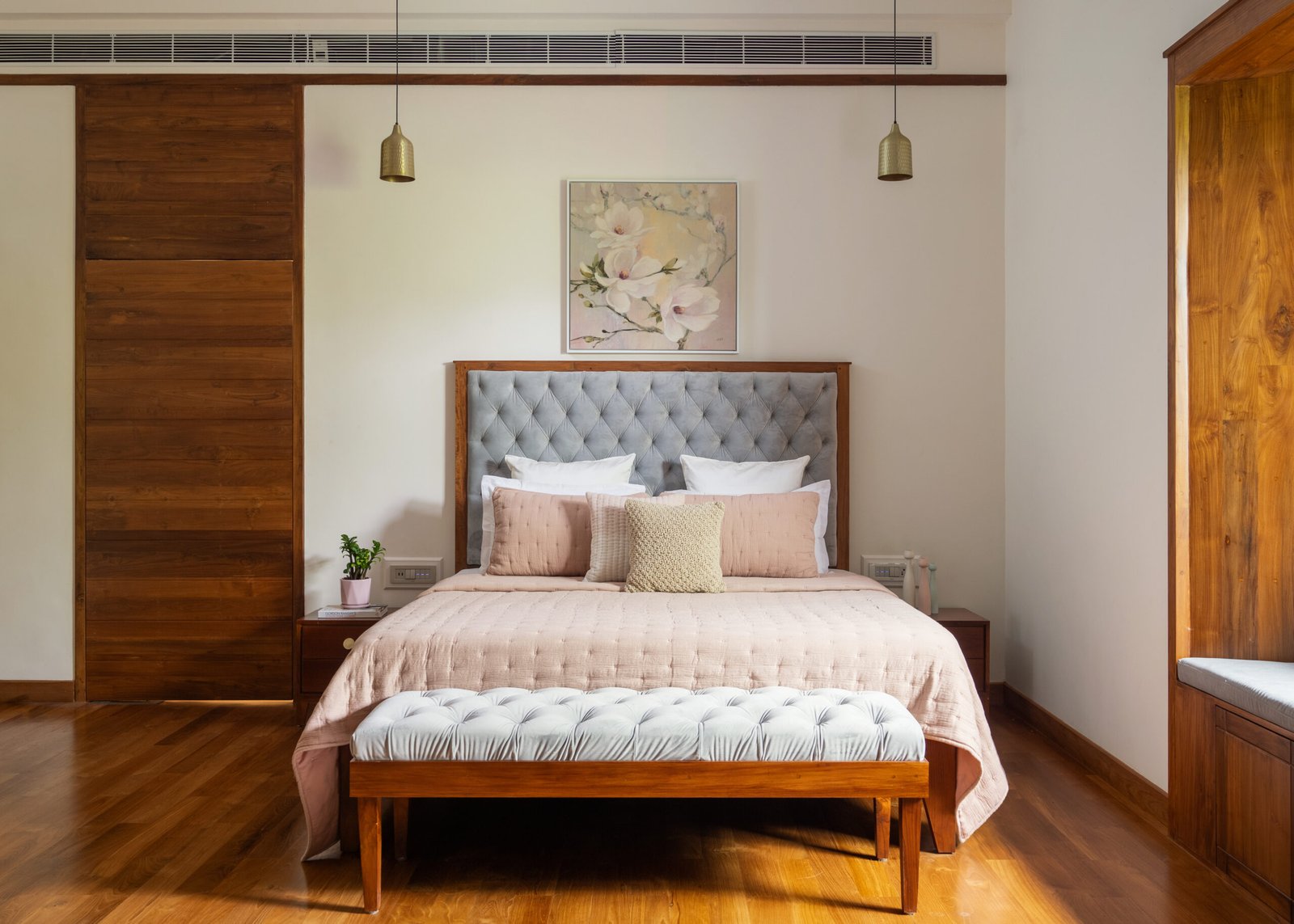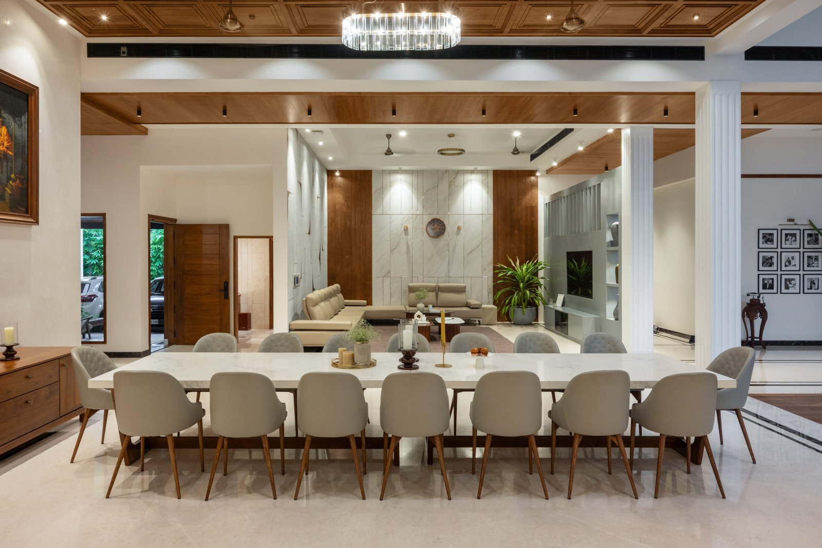 Every room in the house is meant to bring the family together, beginning with the tall Ficus that welcomes on arrival and becomes the center stage for family events, to the Floating deck that overlooks into the vast greenscape, that is an integral part of the home as well as their everyday life. Witnessing every milestone in the family, from baby steps to numerous anniversaries, this house is a strong witness for the generations to come.
