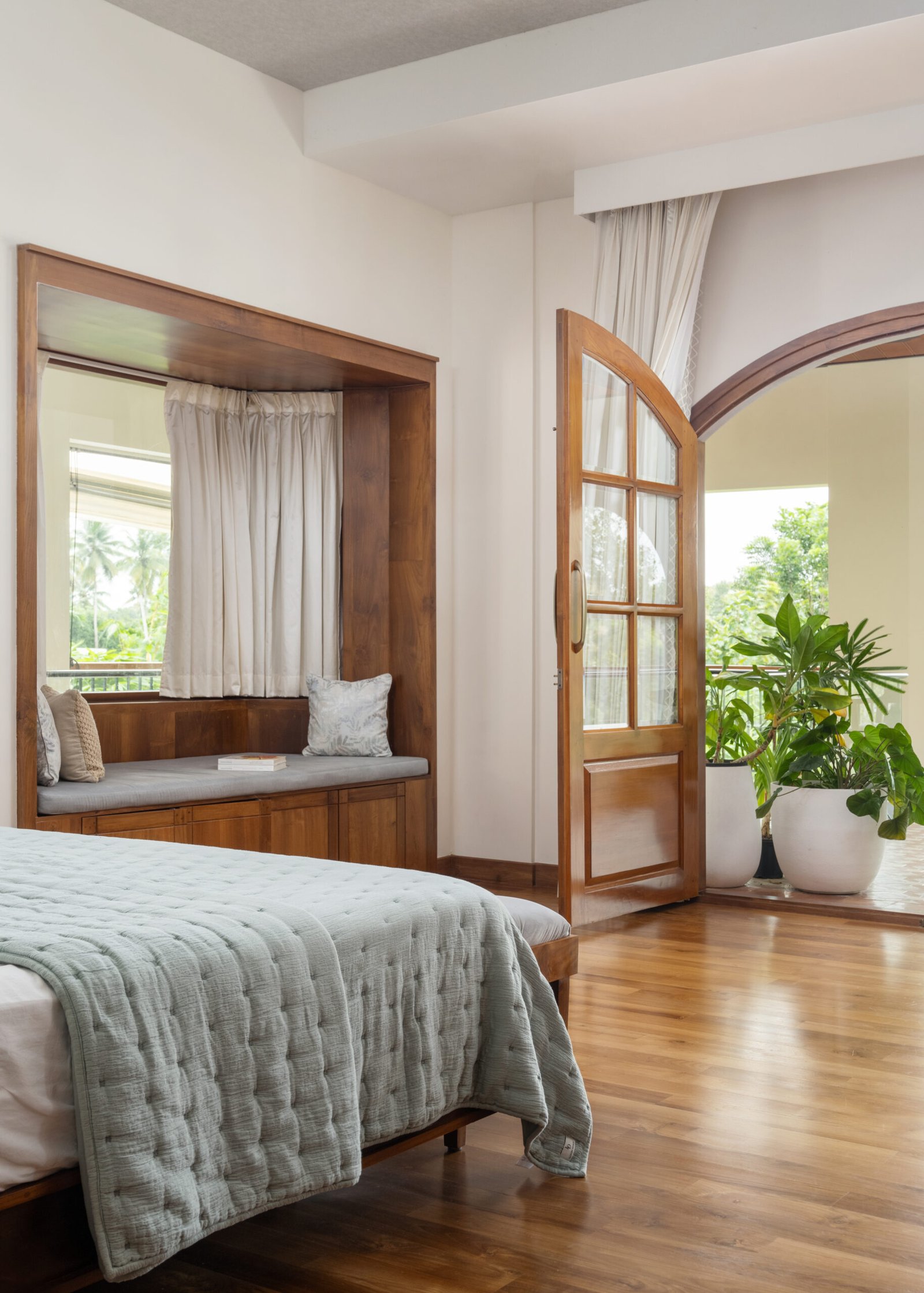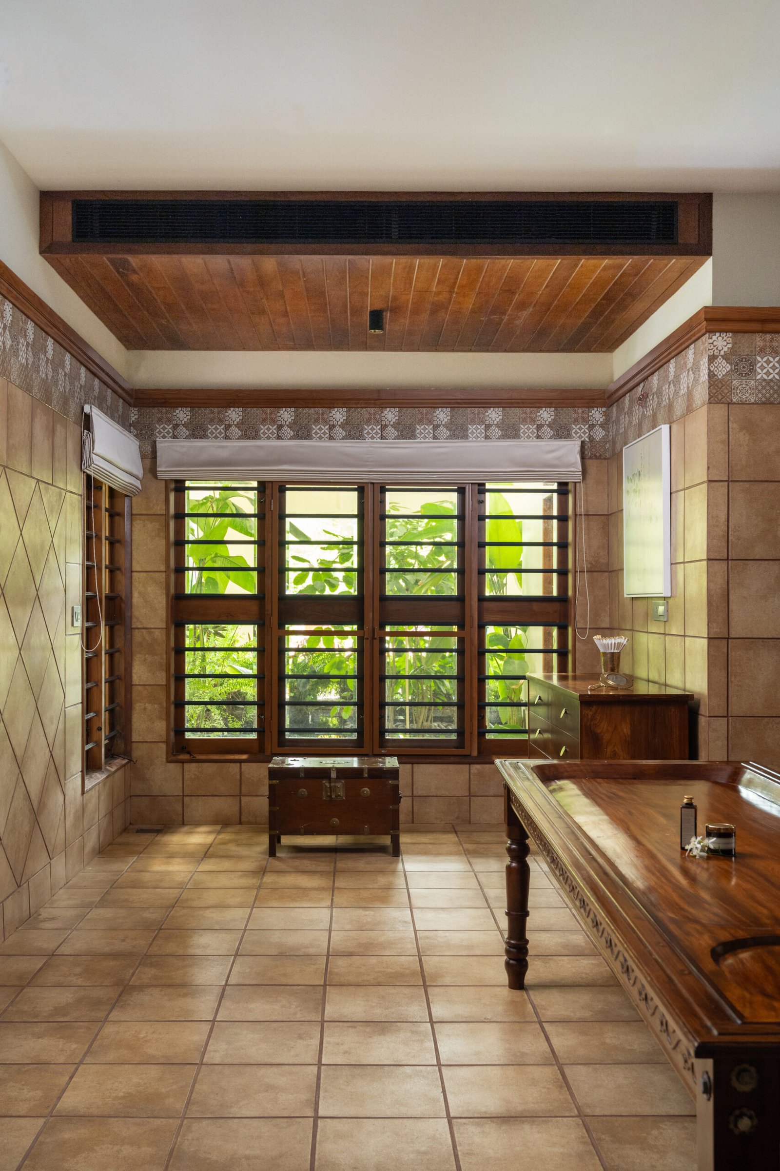 Placed in the serene setting of the village of Karukutty, is a man’s dream, an abode for his family and generations to come. The Floating Deck house is the tactile translation of traditional values that the family holds close to their heart – their love to convene and bring together their close knit family, an eagerness to spread a treat or two for their friends and their aspiration to leave behind strong roots for the generations to come. Influenced strongly by the Suriani adaptation of Kerala homes and classic European philosophy, the home connects to an era bygone, while striding forward.