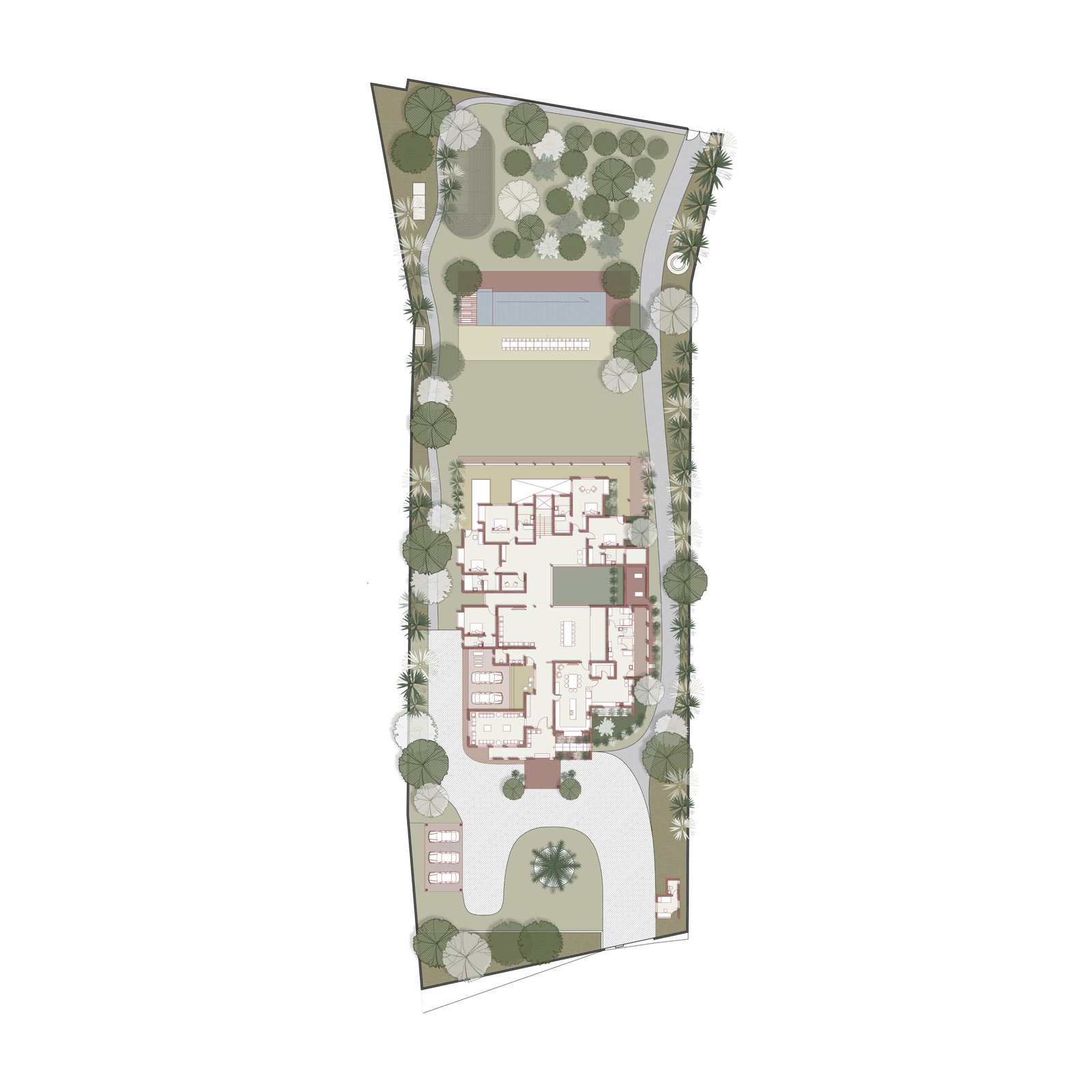 Connected by a strong central spine, the levels of the site are differentiated into three zones, each with its own significance, adding to the entirety of the home. Free flowing, tall and well connected spaces adorn the plan, and accommodate seamlessly, the numerous gatherings and festivals that take place here. Split sectionally into two levels, the entry level comprises the family living spaces, while the lower level is recreational, taking the site’s slope and incredible view to its advantage.